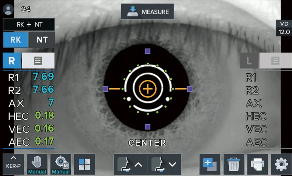 Es útil para una prescripción precisa de ajuste de lentes de contacto, ya que esta función mide continuamente la curvatura de la córnea en los lados superior, inferior, izquierdo y derecho desde el centro de la córnea.