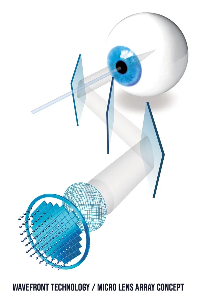La tecnología de Frente de Onda de Huvitz, junto con su propio algoritmo de análisis y matriz de micro lentes, proporciona datos de refractometría precisos y confiables. El usuario puede monitorear datos pre y post cirugía refractiva (aberración esférica) y analizar datos de órdenes superiores para personalizar la prescripción de lentes.