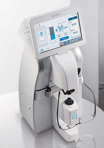El HLM-9000 mide la transmitancia de luz azul, de la lente de bloqueo de luz azul.