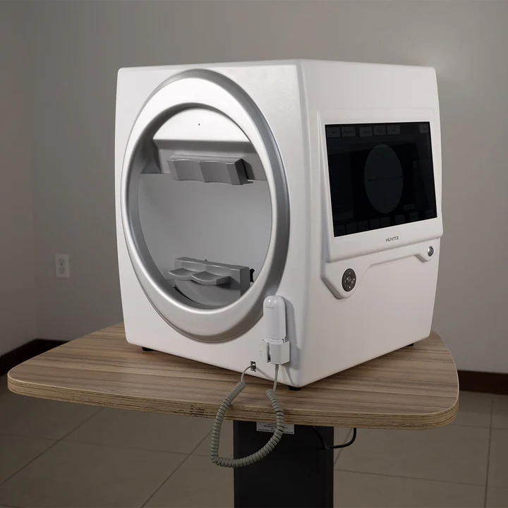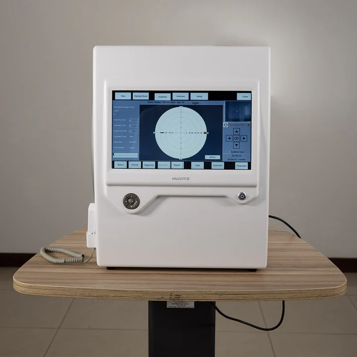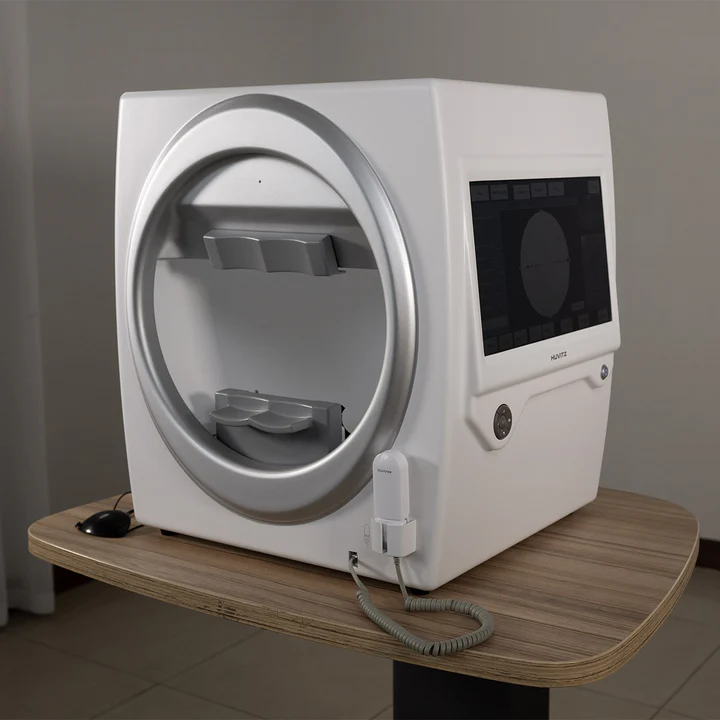 El perímetro automático HVF-100 aprovecha tecnologías internacionales de vanguardia. Opera utilizando un sistema de proyección trasera que ofrece un amplio rango de pruebas desde 0 hasta 90 grados. Equipado con un sistema de PC de alta gama, todo el conjunto destaca por su confiabilidad y ofrece un rendimiento constante. Es compatible con varios sistemas operativos Windows, incluyendo XP, WIN7 y Windows 10, con una interfaz de software intuitiva y amigable para facilitar su uso y aprendizaje rápido. El sistema cuenta con una variedad de programas y estrategias de pruebas, además de un software de informes y análisis de pruebas estandarizado. Esta solución integral ayuda en el diagnóstico auxiliar de enfermedades relacionadas con la visión.