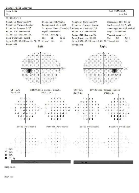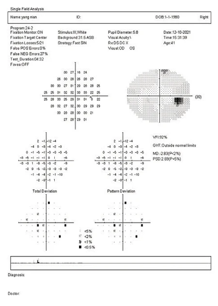 El informe de prueba proporciona un diagnóstico auxiliar para enfermedades relacionadas con el daño a la visión.